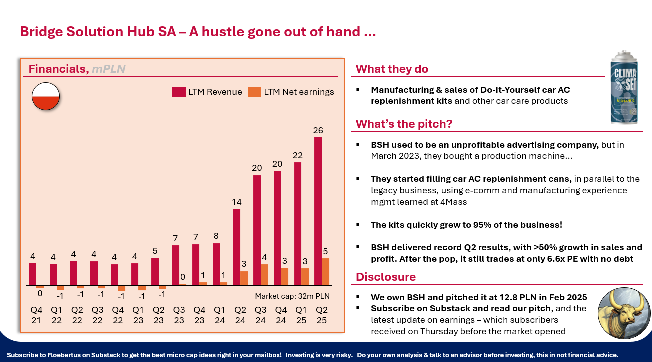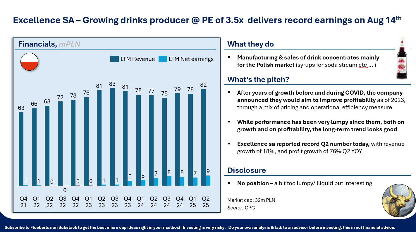 Bridge Solutions Hub is still one our favorite Polish stocks, even though it has run up a bit. The company should do very well in Q3 given weather conditions, and this will make it even cheaper than it already is. We posted a full review of the companies’ earnings 2 weeks ago: