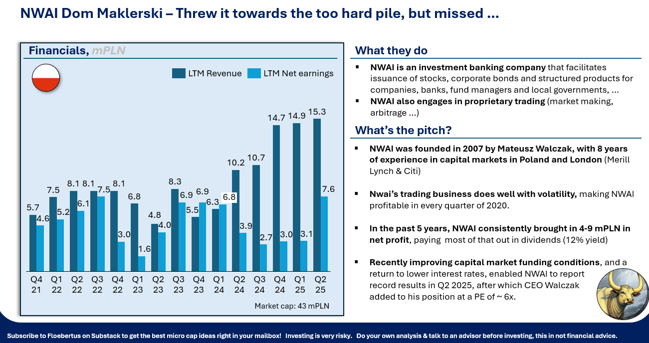 NWAI dom Maklerski is a small company which should do well as rates come down and capital market conditions loosen up: