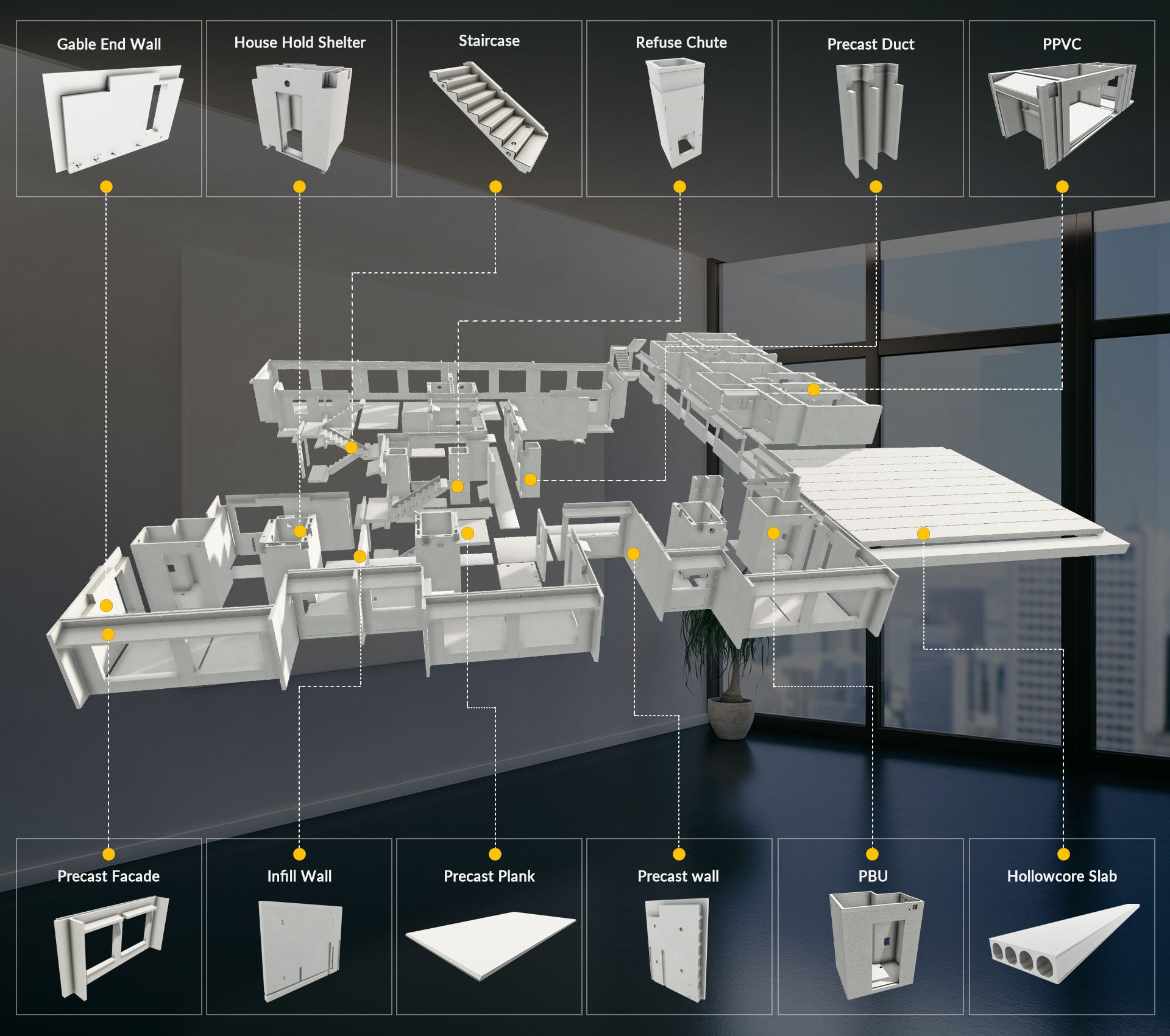 Soilbuild Precast & Prefab, manufactures precast concrete and steel components in Singapore and Malaysia. The components are sold to Soilbuild’s construction business unit, as well as to external customers. Example clients are the Singaporean housing board (HDB) and Soilbuild’s construction BU.